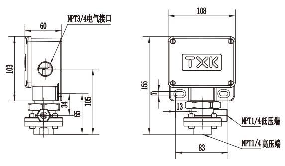 TXK differential pressure switch adopts diaphragm piston combination induction, suitable for low to high differential pressure, different static pressures, pulse pressures or cycle rates in fluid dynamics or process applications. Can be used for air, gas, oil, water, and non corrosive media.